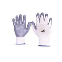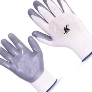 Luva de segurança tricotada em náilon (poliamida), revestimento em borracha nitrílica na face palmar, dedos, e ponta dos dedos, com dorso (ventilado), punho tricotado em elástico com acabamento em overloque.