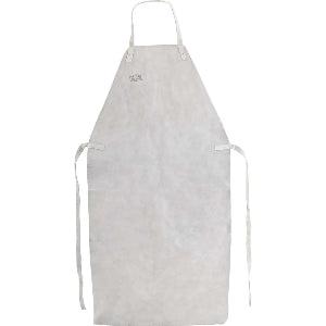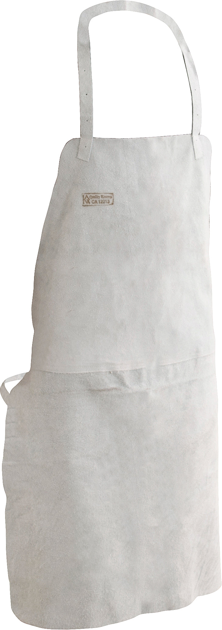 Avental de segurança confeccionado em raspa, tiras em raspa e fivelas na cintura e no pescoço para ajustes.