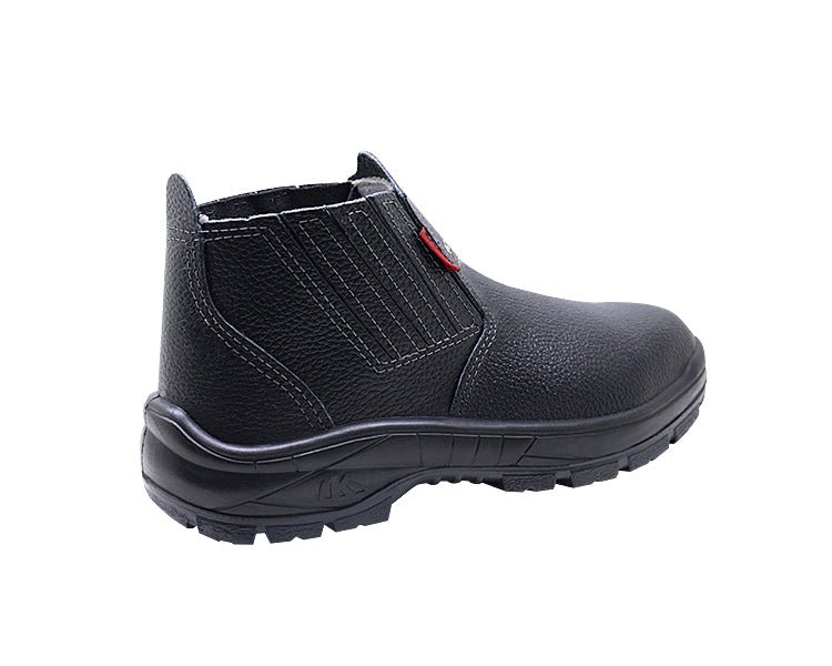 Bota de elástico Kadesh, linha Impacto, em couro groupon, preta, com solado em poliuretano bidensidade.