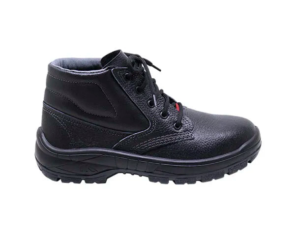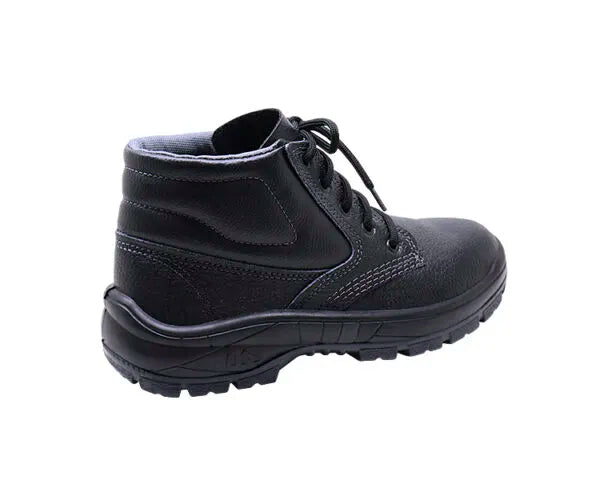 Equipamento: BOTINA - TIPO B Calçado ocupacional tipo botina, fechamento em cadarço, confeccionado em couro curtido ao cromo, Pamilha de montagem em não tecido montada pelo sistema strobel, sem biqueira de proteção, solado de poliuretano bidensidade, injetado direto ao cabedal, resistente à absorção de energia na área do salto (E) e resistente ao escorregamento em piso de ladrilho de cerâmica com solução de sabão (NaLS) e ao escorregamento em piso de aço com Glicerina (SRC), indicado para uso eletricista em tensão de 500 V a seco.