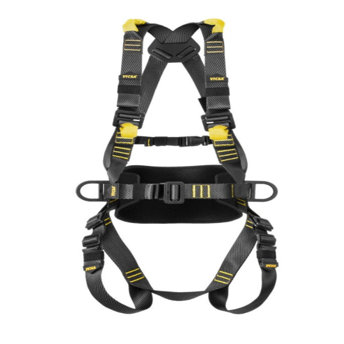Cinturão paraquedista / abdominal confeccionado em fita primária e secundária de poliéster FR de 45 mm. Possui elemento de engate peitoral para suspensão, resgate e retenção de queda em fita de poliéster FR, argola dorsal em formato D com revestimento dielétrico para retenção de queda. Possui elemento de engate de posicionamento na cintura, sendo dois laterais em argola em formato D com revestimento dielétrico. Possui fivela para regulagem peitoral, duas fivelas dielétricas para regulagem nas coxas e uma fivela dielétrica para regulagem na cintura . Com almofada na cintura: altura de 190mm e 720mm de comprimento. Acompanha bolsa para transporte.