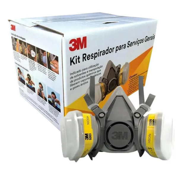 Kit respirador Semifacial 6200 - com cartucho 6003 Quimicos e Acidos + Filtro e Retentor 3M