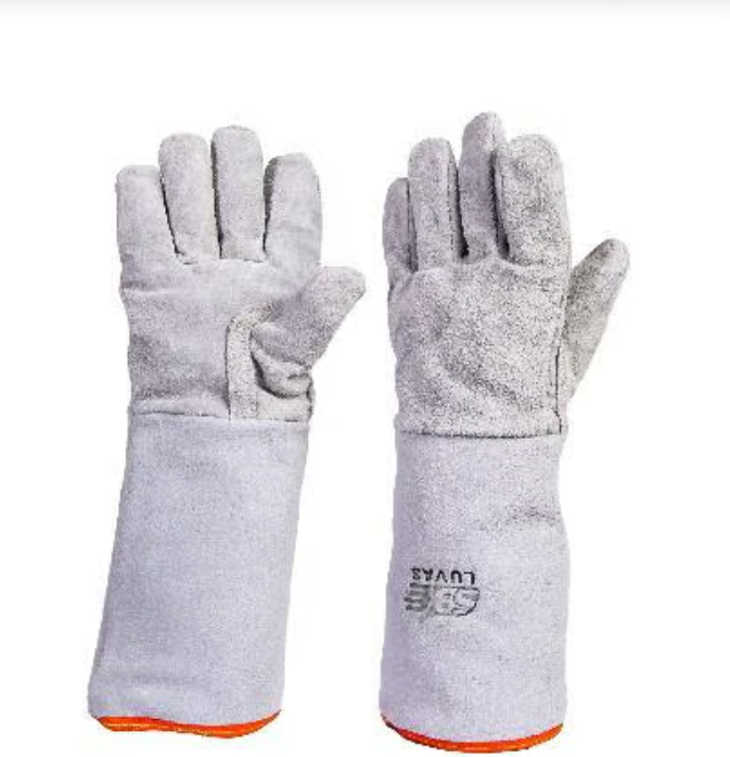 Luva de raspa punho 20 cm, com tira, reforço interno de palma ou reforço interno total, costurada em fio de aramida, raspa groupon.