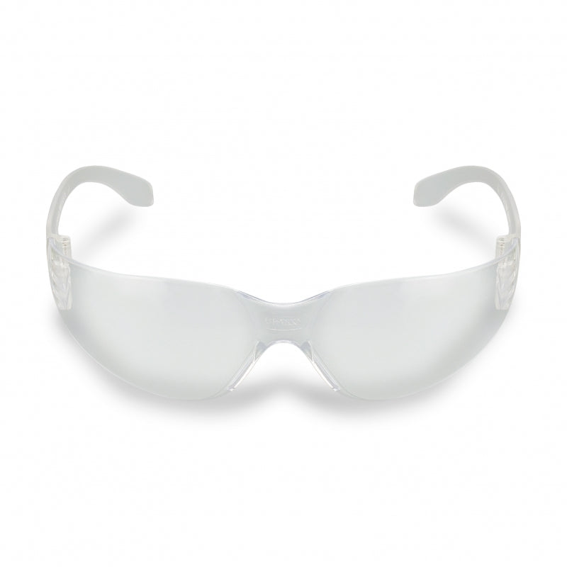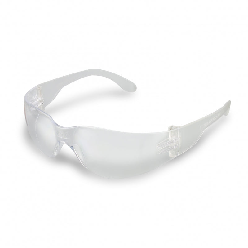 Óculos de proteção, com armação e visor confeccionados em uma única peça de policarbonato incolor, amarelo, cinza, verde, incolor com revestimento externo de filme prateado, cinza com revestimento externo de filme prateado e verde-escuro tonalidade 5, componente e apoio nasal injetado na mesma peça e hastes tipo espátula. As hastes são confeccionadas do mesmo material da lente e articuladas nas extremidades do visor por meio de parafusos metálicos.