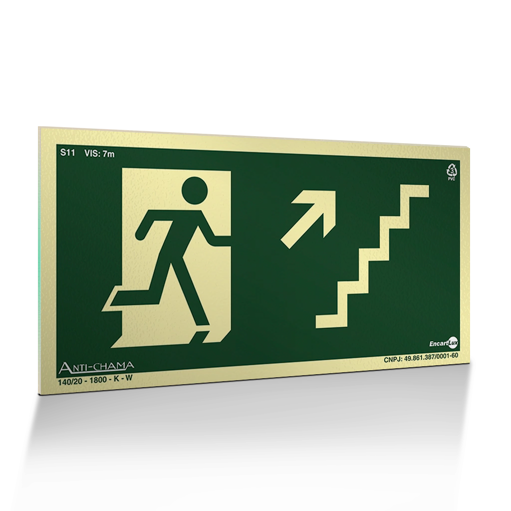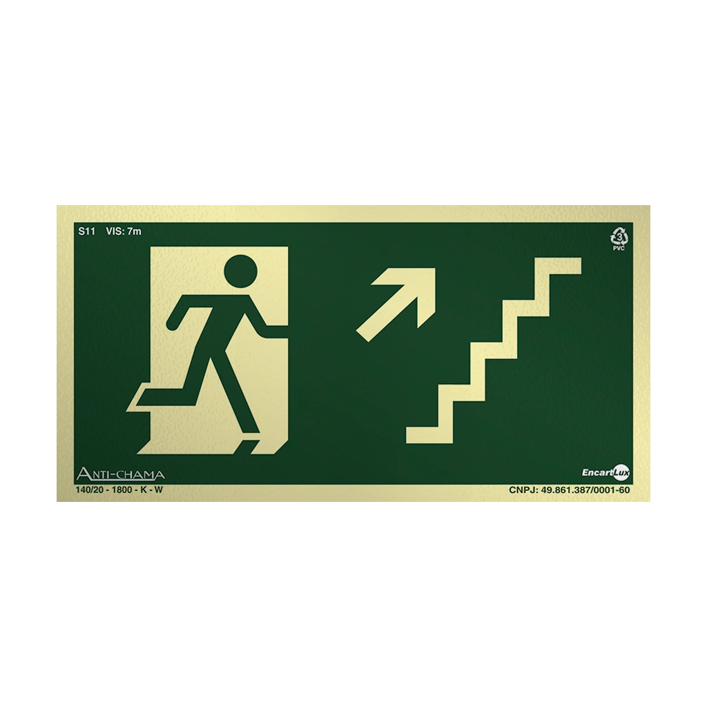 Placa Fotoluminescente S11 Escada de Emergência à Direita Acima com Pictograma