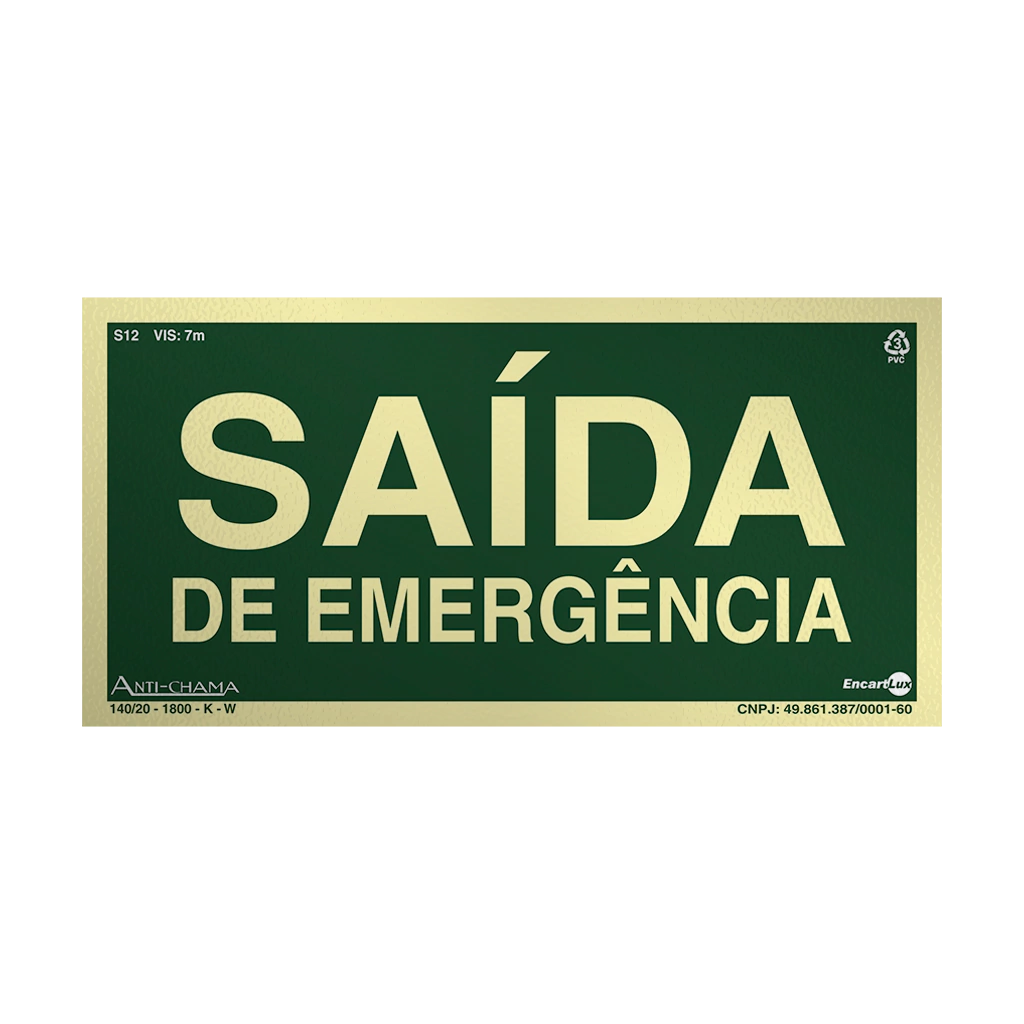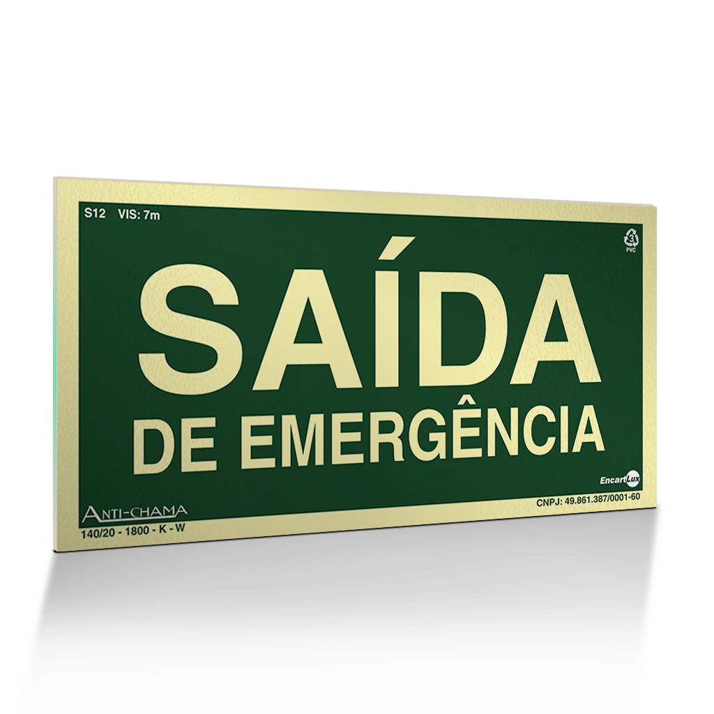 Placa Fotoluminescente S12-2 Saída de Emergência