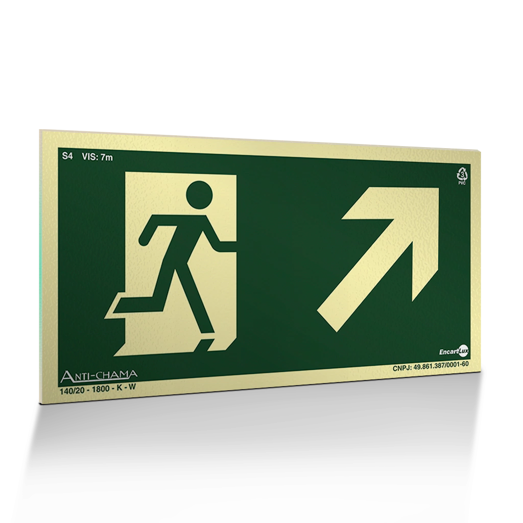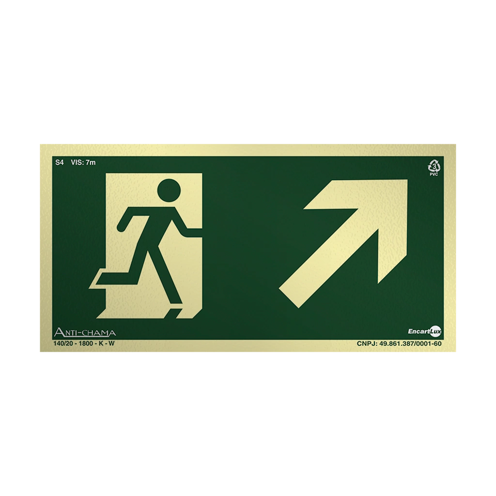 Placa Fotoluminescente S4 Saída de Emergência à Direita Acima com Pictograma