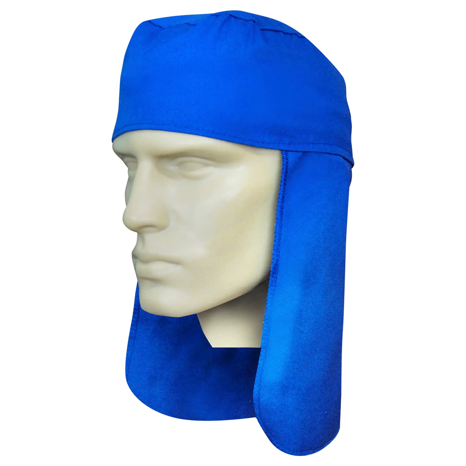 Touca Soldador: touca confeccionada em brim na cor azul, com proteção para a nuca.