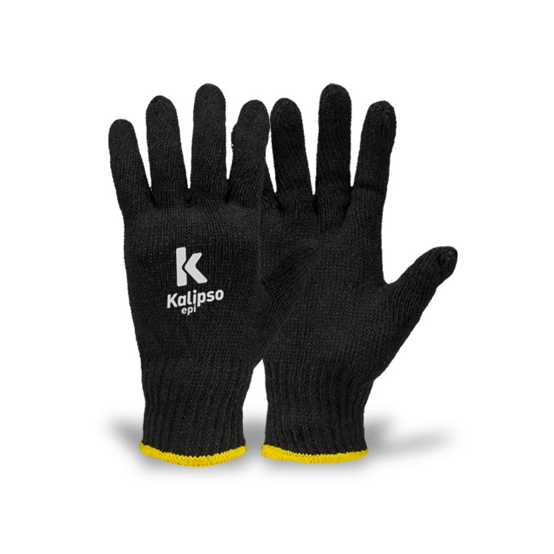 Luva de segurança tricotada em fios de algodão e poliéster, punho em elástico com acabamento em overloque.